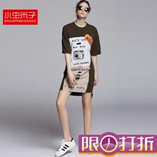 【大清仓】小虫米子贴布印花宽松运动中长款中袖连衣裙C813