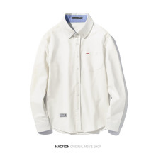 春季男士日系牛津纺衬衫男纯色长袖 青年学生休闲衬衣纯棉白衬衫