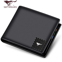 七匹狼钱包男短款真皮正品头层牛皮横款钱夹男士钱包商务皮夹青年
