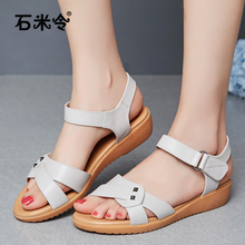 2017新款凉鞋女夏季平底中老年女式真皮妈妈鞋子百搭优雅大码女41