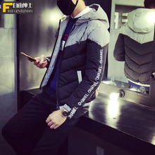 冬季羽绒棉服青少年男 潮连帽印花加厚棉衣 2016新款男士拼接棉袄