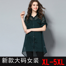 欧洲站胖妹妹大码女装雪纺条纹中长款衬衣胖mm空调衫薄款开衫上衣