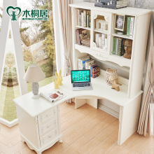 木桐居欧式实木直角转角书桌书柜组合法式台式电脑桌象牙白写字台