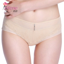 依纷蕾丝花边性感提臀中腰纯色透明大码女士内裤女式平角裤