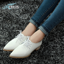 麦克西尼女鞋单鞋新款小白鞋粗跟真皮尖头英伦风时尚系带中跟