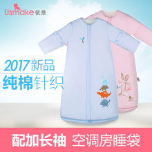 优是纯棉睡袋婴儿童分腿睡袋宝宝防踢被夏季薄款单层纯棉针织睡袋