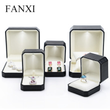 FANXI凡西LED发光求婚戒指盒PU皮创意八角耳钉钻戒项链首饰盒