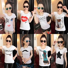 9.9包邮女装韩版t桖卡通短袖纯白t恤女学生夏季半截袖体恤女上衣
