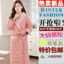 睡袍女冬季长袖三层加厚保暖纯棉夹棉浴袍加肥加大码宽松款家居袍