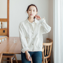 遇见白色方领长袖工装外套女宽松百搭明线装饰棉质牛仔外套春新款