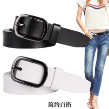 女士皮带窄款简约百搭韩版休闲装饰针扣腰带黑色光身真皮牛仔裤带