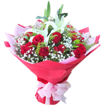 玫瑰百合花束上海鲜花店重庆深圳鲜花同城速递北京南京情人节鲜花