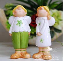 田园工艺品摆设生日礼物陶瓷手绘情侣娃娃家居饰品电视柜摆件