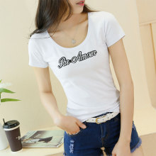 短袖t恤女2017夏季新款韩版修身百搭纯棉印花打底衫显瘦学生体恤