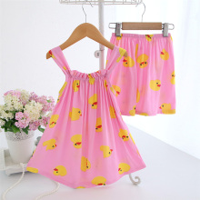 夏季中童女童睡裙套装儿童家居服裙子睡衣小女孩宝宝可爱卡通童装
