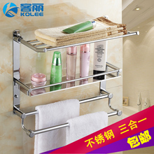 客丽 浴巾架不锈钢置物架 带毛巾架 多功能可折叠3层卫生间置物架