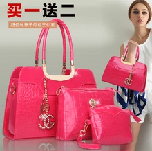 包包2016新款潮女春 鳄鱼纹菱格包包女 女包三件套子母包女潮包