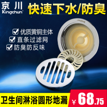 京川全铜防臭圆形地漏不锈钢过滤芯防臭地漏洗衣机卫生间淋浴地漏