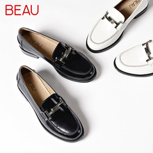 BEAU夏季新款乐福鞋女真皮金属扣漆皮单鞋浅口英伦鞋女平底小皮鞋