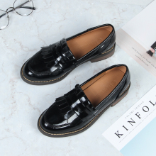 春秋款英伦风女鞋复古学院风粗跟漆皮流苏单鞋布洛克小皮鞋