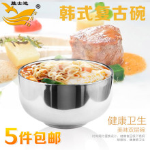 胜士达韩式复古不锈钢碗双层碗儿童宝宝防烫隔热饭碗汤碗刻字定制