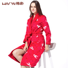 韩彩睡衣女冬加厚三层夹棉可爱纯棉浴衣浴袍中长款冬天保暖睡裙