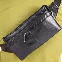 头层牛皮超薄小腰包 男士真皮胸前挂包 手工休闲运动包手机包潮款