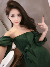 2017夏装新款时尚气质一字领抹胸灯笼袖开叉系带修身连衣裙潮E603
