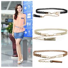 镂空雕花流苏女士细腰带 韩版百搭腰链女款装饰皮带 糖果色配裙子