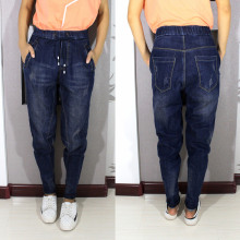 女士时尚宽松大码哈伦裤加肥牛仔长裤加大休闲显瘦垮裤松紧腰胖mm