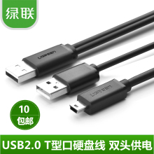 绿联 mini usb移动硬盘数据线T型口移动硬盘线双usb2.0硬盘数据线