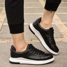 男士休闲鞋真皮男青年潮鞋韩版潮板鞋子百搭厚底增高黑白拼色板鞋