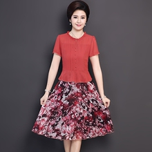 母亲节妈妈装夏装连衣裙中老年修身女装短袖时尚雪纺衫碎花裙子夏