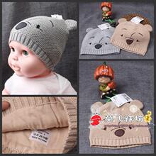 全棉宝宝耳朵帽子 卡通刺绣双层婴儿毛线帽子 秋冬儿童帽