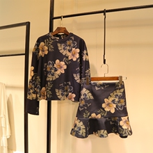 2017秋冬新款YNL东大门韩国 气质名媛套头印花上衣短裙两件套
