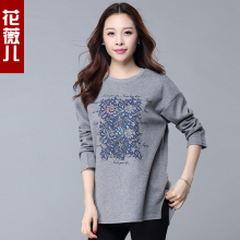 大码春装女胖mm2017外套新款女装韩版潮中长款宽松百搭圆领卫衣女