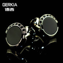 德西 男士法式衬衫袖扣 商务黑玛瑙镶钻袖扣袖钉cufflinks