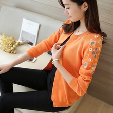 甜美圆领绣花春装新款针织衫女开衫长袖宽松短款学生毛衣小外套潮