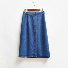 四季简约基础百搭高腰暗扣修身牛仔A字裙长裙学院包臀半身裙女