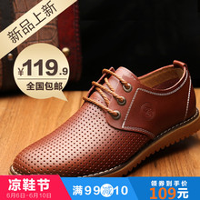 帕达索 夏季透气商务鞋镂空英伦男鞋男士真皮休闲皮鞋男休闲鞋
