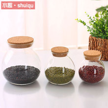 手工耐热玻璃茶具 茶杯 软木塞玻璃茶叶罐 圆茶罐 储物罐 糖果罐
