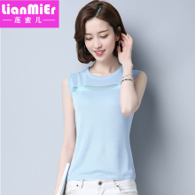 冰丝针织衫女套头薄款2017春季新款宽松韩版短款镂空无袖T恤女夏