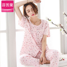 芬芳果夏季睡衣女纯棉短袖长裤中年妈妈大码宽松居家服中老年套装
