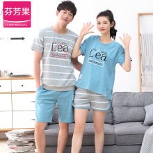 芬芳果夏季纯棉睡衣女夏韩版短袖全棉情侣套装薄款外穿男士家居服
