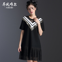 2016新款大码连衣裙胖妹妹夏装200斤加肥加大码女装短袖打底衫潮