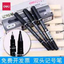 得力小双头油性记号笔 儿童绘画勾线笔黑色马克笔勾边笔粗细12支
