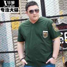 毕蒙夏装新品男装t恤加肥加大码短袖印花t恤肥佬胖子军绿短袖t恤