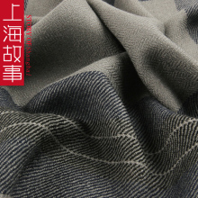 上海故事秋冬新品 男士围巾 秋冬保暖 加宽条纹细格商务羊毛围巾