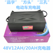 包邮爱玛新日雅迪方头三孔智能防反接48V12AH20AH电动车充电器