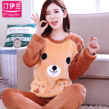 可爱卡通小熊睡衣女士秋冬季加厚法兰绒珊瑚绒长袖韩版套装家居服